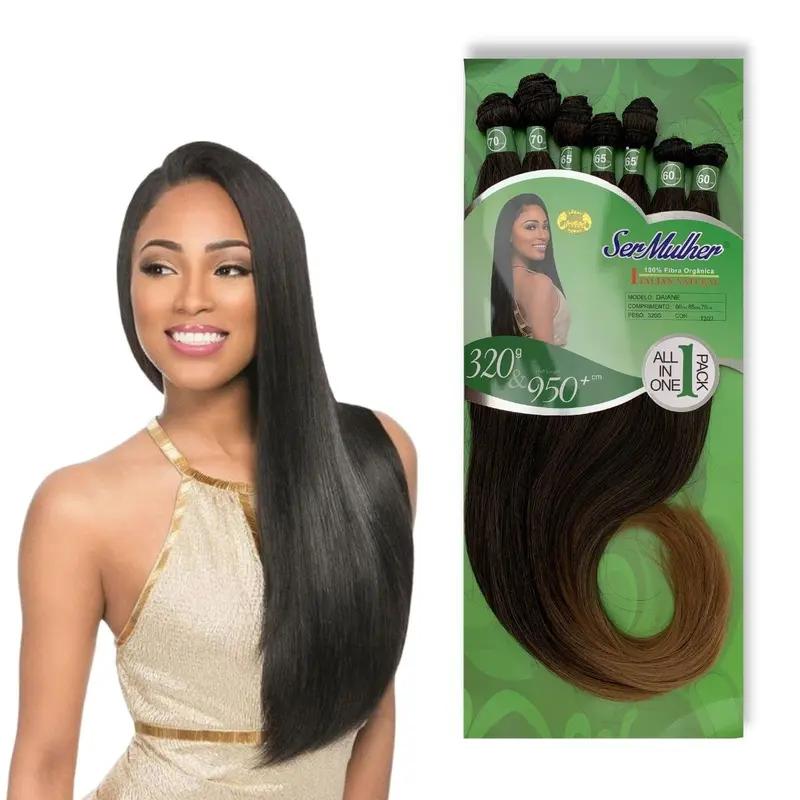 Cabelo com textura natural, idêntico ao humano. No método Entrelace o acabamento fica perfeito, muito natural.